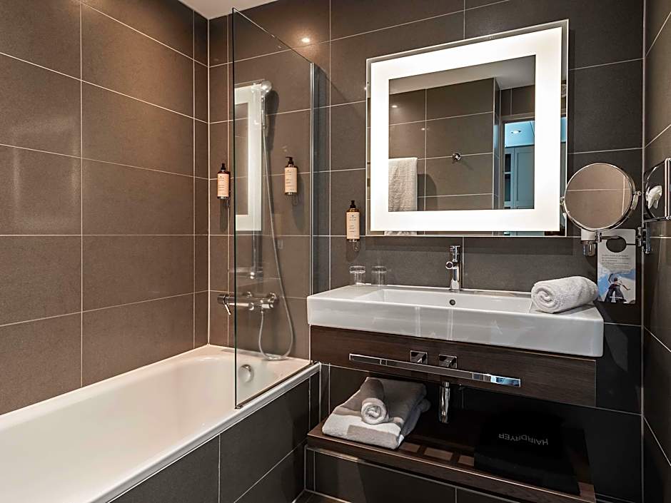 Step into the comfort of your well-appointed room, equipped with amenities such as air conditioning, an extra-long bed, bathtub, and free Wi-Fi. Start your day off right with a delicious breakfast before heading out to discover the city's sights and attractions. If you prefer to relax at the hotel, take advantage of the sun deck and terrace, or enjoy a refreshing drink at the bar.